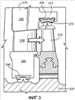 На фиг.2 также показан подобный носитель 170 уплотнения, установленный на дальнем в осевом направлении фланце или выступе 174 внешнего кольца 120 диафрагмы. Носитель 170 уплотнения имеет обращенную радиально внутрь уплотнительную поверхность в конфигурации “высокая-низкая-высокая” с истираемым материалом 160, нанесенным на эти обращенные радиально внутрь уплотнительные поверхности. Зубцы 176, расположенные на кольце на кромках лопаток или на бандаже 178, расположены в радиальном направлении против истираемого материала 160 уплотнительных поверхностей носителя 170. Согласно обоим объектам в отношении выполнения носителей уплотнения зазор между уплотнительными зубцами и истираемым материалом может регулироваться для соответствия переходным условиям. Кроме того, потенциальный путь протечки между носителем уплотнителя и его несущей конструкцией, то есть внутренним и внешним кольцами 126 и 120, соответственно, уплотнен обращенными друг к другу в осевом направлении уплотняющими поверхностями на задней стороне носителя.