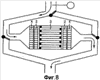 фиг.8 – схематический вид, иллюстрирующий устройство для очистки выхлопного газа в соответствии с пятым вариантом осуществления настоящего изобретения, в котором выхлопной газ протекает в нормальном направлении потока; и