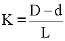 Значение А – величина переменная и зависит от высоты конуса L, скорости движения конуса V1, и его конусности К, определяемой как: