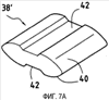 В примере с фиг. 7А опорный элемент 38′ из эластомерного материала является по существу одинаковым с опорным элементом с фиг. 5, хотя он дополнительно имеет два паза 42, продольно проходящих в его материале. Эти пазы 42 служат для того, чтобы было легче извлекать опорный элемент.