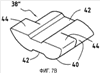 Как показано на фиг. 5, такой опорный элемент 38 по существу выполнен в форме плоского прямоугольного бруска и имеет поверхности 40 контакта, которые предназначены для вхождения в соприкосновение, во-первых, с соседними выступами 20 и 32, между которыми помещен опорный элемент, и, во-вторых, с внутренней поверхностью стопорного кольца 30 и с фланцем 18 вращающегося диска 10.
