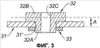 На фиг.4 показаны обе детали, соединенные друг с другом в соответствии с настоящим изобретением. Вставку обработали до размера А, и вторая деталь входит в контакт с обработанной стороной вставки. Эта вторая деталь может быть выполнена из композитного материала, как и первая, или из металла. Соединение осуществляют заклепкой через сквозное отверстие 32С, выполненное во вставке 32. Заклепка 35 сжимает две открытые противоположные стороны: одна сторона принадлежит детали 34, другая – цилиндрической части 32А вставки.