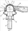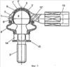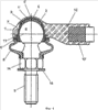 на фиг.2 – сопоставимый с вариантом на фиг.1 шаровой шарнир, корпус которого соединен со стержнем,