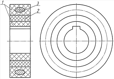 Этих недостатков лишены демпферы, использующие в качестве упругого тела комплект из нескольких независимых, устанавливаемых путем механической сборки упругих элементов из эластомерного материала, однако они требуют усложнения конструкции демпфера за счет применения дополнительных деталей, обеспечивающих крепление упругих элементов и коаксиальность ведущей и ведомой частей [1]. Кроме того, упругие элементы и места контакта с ними имеют, как правило, достаточно сложную форму и нетехнологичны в изготовлении.