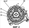 12. Передача по п.1, отличающаяся тем, что вторые соединительные зубья, выполненные по окружности на кожухе (1) и водиле (16) пилообразными в перпендикулярном оси сечении, выполнены на зубчатом кольце (46, 46 ).
