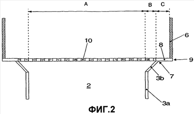 После этого на нижних частях стенок 3а всасывающего короба закрепляют, например, посредством сварки, наклоненные вверх части 3b. Затем на боковых краях 7 наклоненных вверх частей 3b закрепляют газонепроницаемые опорные элементы 8, находящиеся примерно на высоте колосниковой решетки 1. Газонепроницаемые опорные элементы 8 необязательно должны быть выполнены в виде плит, а могут иметь также, например, треугольный профиль сечения.