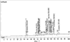 Для анализа используют прибор капиллярного электрофореза «Капель-103 Р», который оборудован ультрафиолетовым детектором с длиной волны детектора 254 нм (например, фиг.1, фиг.2 и фиг.3), где используется кварцевый капилляр длиной 0,5 м до детектора, внутренним диаметром 75×10-6 м; регулируемый источник высокого напряжения положительной полярности 3-25 кВ; гидростатический ввод пробы под давлением 30 мбар в течение 5 сек; буферный рабочий раствор на основе -циклодекстрина (54 мг в 12,5 см3 буферного раствора дигидрофосфата и гидрофосфата натрия); напряжение «плюс 10 кВ»; время анализа проходит в течение 40 мин; принудительное воздушное охлаждение капилляра до комнатной температуры; вывод и обработка результатов на компьютере.