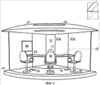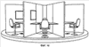 4. Устройство по п.1, отличающееся тем, что состоит из восьми двухместных кабинок, в которых два стула расположены напротив друг друга, причем места внешнего ряда, по меньшей мере, четырех кабинок оснащаются комплектами технических средств.