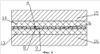 На фиг.1 изображена конфигурация полосковых проводников и включенный между ними резистор взятого за прототип синфазного полоскового делителя мощности. Устройство содержит колосковые проводники, формирующие две выходные линии передачи 1 и 2, каждая из которых соединена с входной линией передачи 3 в точке разветвления 5, и резистор 4, включенный между выходными линиями на расстоянии четверти длины волны в линии передачи от точки разветвления. Согласование входа делителя с подводящей линией обеспечивается тем, что между точкой разветвления 5 и резистором 4 выходные линии содержат трансформирующие секции 7 с уменьшенной шириной полосковых линий, которые имеют увеличенное волновое сопротивление. Полосковые проводники расположены между диэлектрическими подложками 13 и 14. С внешней стороны подложек расположены экраны 15 и 16. Эти элементы показаны на фиг.2, где взятый за прототип синфазный делитель мощности изображен в поперечном сечении вдоль оси симметрии.