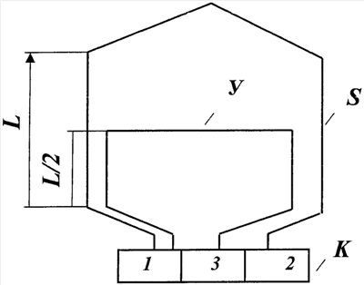 Изобретение поясняется графически. На чертеже показана схема подключения заявляемого уравнительного соединения второго рода. Уравнитель У выполнен в виде витка, уложенного до середины осевой длины L пазов якоря, в которых располагается секция S. Начало уравнителя У присоединено к платине 1 коллектора К, а конец – к пластине 3, расположенной между коллекторными пластинами 1 и 2, к которым присоединена секция S.