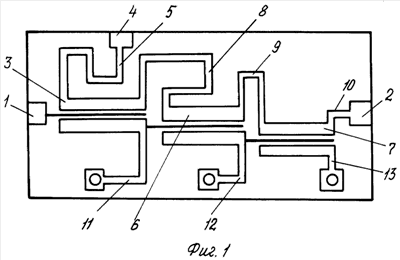 Индуктивность седьмая 13 выполнена в виде отрезка линии передачи шириной и длиной, равной 10 и 12,5 мкм соответственно.