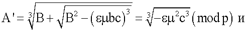 если точки А и В равны. В приведенных в этом примере формулах операции сложения, вычитания, умножения и деления являются операциями сложения, вычитания, умножения и деления m-мерных векторов, а координаты точек ЭК и коэффициенты Za, Zb и К уравнения ЭК являются m-мерными векторами многочленов степени s, т.е. элементами векторного конечного поля GF((ps)m). При задании точек ЭК в проективных координатах сумма двух точек может быть вычислена только с использованием операций умножения, сложения и вычитания [Молдовян Н.А., Молдовян А.А., Еремеев М.А. Криптография: от примитивов к синтезу алгоритмов. – СПб., БХВ-Петербург, 2004. 446 с. (см. с.126-128)], что является общим методом уменьшения времени выполнения операции сложения точек ЭК. Благодаря тому, что операция умножения в конечных полях, заданных в векторной форме, эффективно распараллеливается, использование ЭК, заданных над векторными полями, позволяет существенно повысить производительность процедур формирования и проверки ЭЦП в способах, основанных на выполнении операций над точками ЭК.