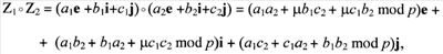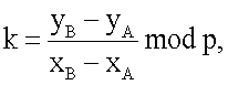 если точки А и В равны. В приведенных в этом примере формулах операции сложения, вычитания, умножения и деления являются операциями сложения, вычитания, умножения и деления m-мерных векторов, а координаты точек ЭК и коэффициенты Za, Zb и К уравнения ЭК являются m-мерными векторами, т.е. элементами векторного конечного поля GF(pm). Используя хорошо известный метод задания точек ЭК в проективных координатах [Болотов А.А., Гашков С.Б., Фролов А.Б. Элементарное введение в эллиптическую криптографию: Протоколы криптографии на эллиптических кривых. – М.: КомКнига/URSS, 2006. – 274 с. (см. с.35-45)] сумма двух точек может быть вычислена только с использованием операций умножения, сложения и вычитания, что является общим методом уменьшения времени выполнения операции сложения точек ЭК.