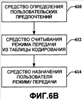 2. Способ по п.1, в котором ассоциативное связывание пользовательских предпочтений с записью или записями в таблице кодирования содержит этап, на котором считывают таблицу кодирования для определения режима и, по меньшей мере, одного вектора или, по меньшей мере, одной матрицы, которая соответствует пользовательскому предпочтению.