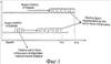 [0006] Фиг.1 изображает приемное устройство, получающее мультимедийные потоки от передающего устройства. Горизонтальная ось представляет истекшее время и показывает получаемые пакеты. Буфер аудио- и видеоданных, показанный на фиг.1, содержит RTP-пакеты, которые были получены от передающего устройства. Буфер выполняет устранение дрожания (из сети) и рассчитывает время воспроизведения для каждого пакета каждого типа мультимедиа. Когда пакет пробудет в буфере заданный промежуток времени, осуществляется его декодирование. Этот промежуток времени обычно является переменной величиной, и часть этого промежутка называется дрожанием. После того как на основе времени воспроизведения будет завершено декодирование, пакеты передаются для отображения или воспроизведения. Следует отметить, что может быть два разных буфера для хранения входящих RTP-пакетов – один для дрожания и один для очереди декодирования. Для облегчения понимания на фиг.1 показана только одна очередь, показывающая комбинированный буфер дрожания и декодирования. После того как пакеты декодированы, они готовы для воспроизведения или отображения при наступлении времени воспроизведения. Однако если приемное устройство пытается выполнить синхронизацию аудио/видео, оно попытается задержать те пакеты, которые прибыли первыми.