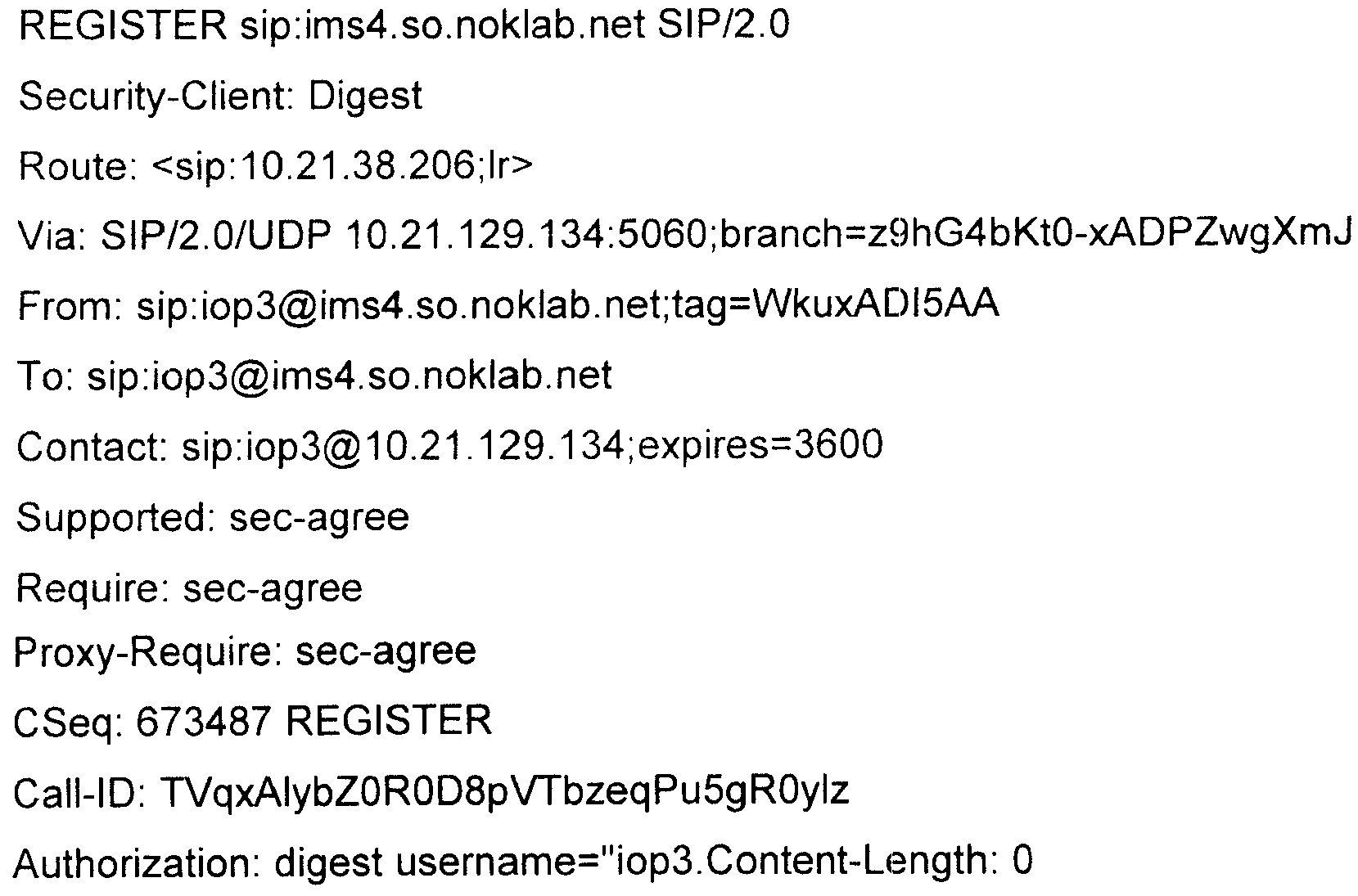 Эффективность вариантов осуществления настоящего изобретения показана ниже на примере типичного сообщения регистрации SIP, подлежащего сжатию.