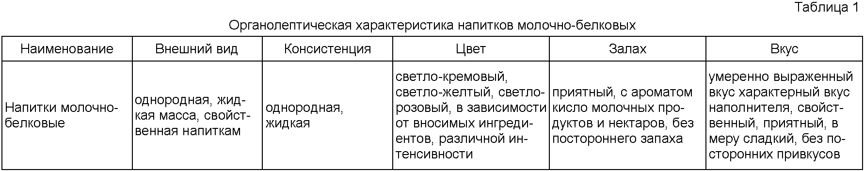 Примечание: химический состав молочно-белковых напитков зависит от вида кисломолочного продукта, используемого в качестве коагулянта и химического состава нектара, используемого в качестве ингредиента. Пример 2 В полученную по примеру 1 соевую белковую основу в качестве коагулянта вносят кисломолочные продукты в соотношении 1:1 – варенец 2,5%-ной жирности по ОСТ 10-02-02-2-86, или ряженку 4%-ной жирности по ОСТ 10-02-02-2-86, или простоквашу 1%-ной жирности по ОСТ 10-02-02-2-86, или сметану 20%-ной жирности по ТУ 10.02.02.789.09-89, или кисломолочный напиток «Бифидок» 1,0%-ной жирности по ТУ 9222-014-16414608-03, или кисломолочный напиток «Бифилайф» 2,5%-ной жирности по ТУ 9222-001-14173891-04, или кисломолочный напиток «Иммунолакт» 3,2%-ной жирности по ТУ 9222-010-48774768-03, или кисломолочный напиток «Тан» по ТУ 9222-003-43563860, или кисломолочный напиток «Айран» по ТУ 9222-002-43563860, или сыворотку молочную по ТУ 9229-110-04610209-02. При этом процессы коагуляции, отделения сгустка и его упаковки аналогичны примеру 1. Характеристика получаемых молочно-белковых продуктов показана в табл.3, 4.