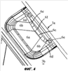 Фиг.2 изображает на виде сверху торцевую сторону 3b внутренней дверцы 3a по фиг.1. На фиг.2 особенно хорошо видно формообразование гнезда 6. В продольном направлении торца гнездо расположено посредине между правым и левам краями (не показано). Из чертежа по фиг.2 можно в особенности понять, что в своей плоскости зева гнездо выполнено, по существу, прямоугольным, причем углы и края в этой плоскости закруглены соответствующим образом. Существенная особенность представленного на фиг.2 гнезда состоит в том, что он является неотъемлемой частью внутренней дверцы, то есть гнездо сформовано или изготовлено штамповкой во внутренней дверце с помощью соответствующего инструмента.