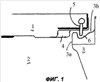 На фиг.1 схематично показано в разрезе запорное устройство по изобретению в бытовом приборе по изобретению (не показан). В данном примере выполнения запорное устройство используется для запирания дверцы корпуса посудомоечной машины (не показана) на корпусе. Позицией 1 обозначена верхняя стенка моечной камеры посудомоечной машины, причем во внутренней камере 2 посудомоечной машины размещена подлежащая мытью посуда. Проем для доступа во внутреннюю камеру закрыт поворотной дверцей 3, которая снабжена внутренней дверцей 3a, образованной штампованным металлическим листом на внутренней стороне дверцы 3. На нижней стороне верхней стенки схематично показано уплотнение 4, которое выполнено проходящим по краю по всему периметру проема и служит для уплотнения между внутренней дверцей 3a и корпусом 1.