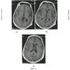 С экрана дисплея вычислили реальные величины линейных параметров на трех последовательных срезах, начиная с уровня базальных ганглиев, таламуса и выше. На уровне базальных ядер таламуса определили максимальную ширину сильвиевых борозд справа (11 мм) на фиг.4а и слева (5 мм) на фиг.4а; на уровне визуализации сосудистых сплетений желудочков головного мозга – ширину задних рогов боковых желудочков справа (12 мм) на фиг.4б и слева (13 мм) на рис 4б и максимальное расстояние между внутренними пластинками костей черепа (139 мм) на фиг.4б; на уровне центральных частей боковых желудочков – минимальную ширину правого (8 мм) на фиг.4в и левого (11 мм) на фиг.4в тел боковых желудочков. Дополнительно рассчитали суммарный когнитивный индекс по предложенной формуле: СКИ=(11+5+12+13+8+11)/139=0,43. Сопоставили вычисленный индекс, равный 0,43, с его критическим значением 0,44. Вычисленный индекс выше значения 0,44, значит прогнозировать развитие постинсультной деменции мы не можем. На 19-е сутки болезни осмотрен психиатром в связи с наличием анозогнозии. Заключение психиатра: психические нарушения на момент осмотра не выявлены.
