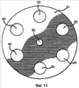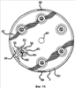 НА ФИГ.13 представлен вид сверху вращающегося элемента центрифуги, соответствующей варианту реализации устройства для отбора и подготовки жира, показанного на ФИГ.1.