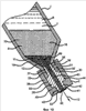 НА ФИГ.20 представлено сечение вставки, вращающегося элемента центрифуги, вала и основания центрифуги, соответствующей варианту реализации устройства для отбора и обработки жира.