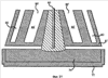 Внутренняя поверхность 62 установочной полости 55 имеет такую форму, чтобы она могла вмещать в себя, по меньшей мере, часть шприца 1 и сборочного узла 2 перед центрифугированием, как показано на ФИГ.1, 8, с 14 по 18, и 27. Внутренняя поверхность 62 установочной полости 55 может также иметь стопорный элемент 63 или стопорную поверхность 64, которая препятствует нахождению игольного конца 19 шприца 1 и сборочного узла 2 в наиболее удаленном участке 65 полости 55. Установочная полость 55 может иметь удаленный сегмент 66 в наиболее удаленной своей части 65 с меньшей площадью сечения 68, чем ближний участок 67 полости 55, что препятствует вхождению сборочного узла 2 и игольного конца 19 шприца 1 в этот удаленный сегмент 66. Наиболее удаленная часть 65 может принимать в себя наиболее плотные вещества 12 из наиболее удаленного слоя 11 в шприце 1, поступающие через фильтр 46, расположенный в сборочном узле 2, во время центрифугирования шприца 1. В наиболее удаленной части 65 может быть помещено или уложено некоторое количество материала 69, например порошка сорбента, предназначенного для того, чтобы превращать поступающие туда наиболее плотные вещества в твердое желеобразное вещество, прилипающее к внутренней поверхности наиболее удаленной части 65 при контакте с ней. Наличие сорбирующего материала 69 позволяет удерживать удаляемые наиболее плотные вещества 12 вдали от шприца 1, а также предотвращает пролив наиболее плотных веществ 12 из вставки центрифуги 3 в случае опрокидывания вставки 3.