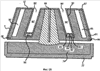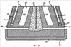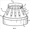 Вставка центрифуги 3 обеспечивает стерильную оболочку или окружающую среду для содержания шприцов 1 во время процесса центрифугирования в центрифуге 4, как показано на ФИГ.1, 8 и ФИГ. с 14 по 18, и ФИГ.27. Вставка центрифуги 3 может быть отлита из пластмассы в виде пластмассовой отливки вставки центрифуги, и может быть одноразовой и выбрасываться после однократного использования, либо может сниматься с центрифуги 4 для стерилизации перед установкой любого набора шприцов 1, подлежащих центрифугированию. Вставка центрифуги 3 может быть изготовлена или отлита из пластмассы достаточно высокой жесткости, чтобы после того, как вставка 3 со шприцами 1 снята с центрифуги 4, она могла удерживать шприцы 1 в том же наклонном вертикальном положении, которые занимали шприцы 1 со вставкой 3, находясь в центрифуге 4, как показано на ФИГ. 27. Такая достаточно жесткая вставка центрифуги 3, вдобавок к обеспечению стерильной атмосферы при центрифугировании, действует также в качестве штатива для шприцов, когда вставка 3 вместе со шприцами 1 отсоединена от центрифуги 4, снята с нее и поставлена или оставлена на поверхности 54.