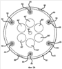 Вращающийся элемент 61 центрифуги имеет, по меньшей мере, одну полость центрифуги 60, как это упоминалось выше. В одном из вариантов реализации вращающийся элемент 61 центрифуги имеет множество полостей центрифуги 60, которые все, в основном, одинаковы по размерам и устроены так, чтобы вписываться во множество установочных полостей 55, имеющихся во вставке 3 центрифуги, причем эти полости 55 вставки 3 имеют такую форму, чтобы они могли вмещать в себя, по существу, такие же по размеру шприцы 1 (вместе со сборочными узлами 2, установленными на каждом из шприцов 1), как это показано на ФИГ.10, с 13 по 16. В таком варианте исполнения каждая полость 55 имеет сопрягающуюся с нею полость центрифуги 60.