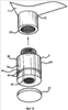 НА ФИГ.8 представлено перспективное изображение с пространственным разделением деталей вставки и центрифуги, соответствующих варианту реализации устройства для отбора и подготовки жира, показанного на ФИГ.1.