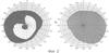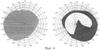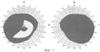 Осмотр окулиста после проведенного курса лечения. Острота зрения на правый глаз улучшилась до 0,7-0,8, на левом глазу появилось уверенное светоощущение. Расширение поля зрения в нижне-височном квадранте и в носовой половине справа на 10-40 градусов по разным меридианам при соответствующем уменьшении размеров абсолютной скотомы. В верхне-височном квадранте абсолютная скотома сохраняется, хотя уменьшилась в размерах (см. фиг.2).