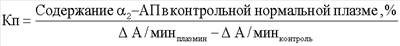 2-АПобразец(% от нормы) = Кп×( А/мин плазмин – А/мин образец)