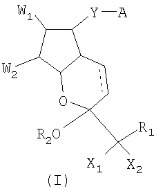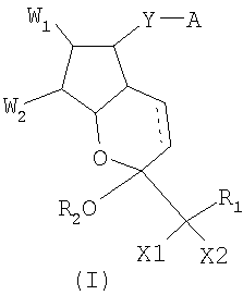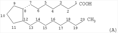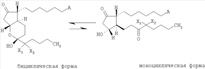 Простагландины (далее PGs) относятся к классу органических карбоновых кислот, содержащихся в тканях или органах человека или других млекопитающих и обладающих широкой физиологической активностью. Природные PGs (первичные PGs) с остовом простановой кислоты, изображенным на формуле (А)