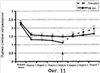 Фигура 11 представляет собой график, демонстрирующий влияние на степень натуживания при дефекации.