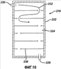 Как показано на фиг.10, простой вариант второго испарителя/конденсатора 216 предпочтительно содержит стенки 222, образующие замкнутое пространство 224, имеющее подвод 226, соединенный с камерой 200, и отвод 228, соединенный с насосом 214. Множество лопаток 230 создает извилистый путь 232 прохождения потока через испаритель/конденсатор 216. Температурой стенок 222 и потенциально лопаток 230 можно управлять для усиления конденсации и повторного испарения раствора.