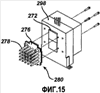 На фиг.12-15 представлен более совершенный конденсатор/испаритель 250. В общем, он содержит впускной коллектор 252, который соединен с источником раствора 204 стерилизатора и обеспечивает начальное испарение, участок 254 конденсации/повторного испарения, выходной коллектор 256 и управляющий клапан 258, через который испаритель/конденсатор 250 соединен с камерой 200. Резистивный нагреватель 260 крепят к впускному коллектору 252 и к выпускному коллектору 256, чтобы обеспечить нагревание для содействия начальному испарению внутри впускного коллектора 252 и предотвратить конденсацию в выпускном коллекторе 256. Предпочтительно, чтобы впускной коллектор 252 и выпускной коллектор 256 были выполнены из алюминия. Кроме того, между впускным коллектором 252 и участком 254 испарителя/повторного испарителя установлен изолятор 262.