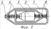 На фиг.2 корпус наружного космического аппарата 1 машины выполнен без носовой части рассеченным и закреплен по линии разреза на сферической поверхности 6, имитирующей космический объект – черная дыра, выполненной из прозрачного материала, в специальном ступенчатом отверстии 7, например, на клею или по посадке с натягом, таким образом, чтобы его хвостовая часть с закрепленными в ней на пружинах внутренними игрушечными КА находилась за пределами внешней поверхности имитируемой черной дыры. Цифрой 8 на фиг.1, 2, 3 обозначены приливы на корпусах 1, 2, 3, выполненные в виде коротких втулок, служащих направляющими для пружин 4, поддерживающих аппараты 2, 3 внутри аппаратов 1 и 2 соответственно.