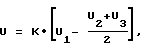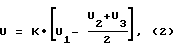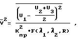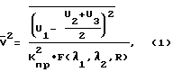 ![]() где усредненное значение квадратичных значений турбулентных пульсаций скорости в морской среде, м/с2;U1, U2 и U3 – напряжения на выходах, первого, второго и третьего преобразователей скорости в электрический сигнал соответственно, В; усредненное значение сигнала В2;Кпр – коэффициент преобразования каждого из преобразователей скорости в электрический сигнал, В/(м/с); 1 и 2 – верхняя и нижняя границы диапазона измеряемых пространственных неоднородностей соответственно, м;R – расстояние от первого преобразователя скорости в электрический сигнал до второго и третьего преобразователей скорости в электрический сигнал, м; F( 1, 2,R) – коэффициент, зависящий от отношений и R/ 2.2. Устройство для определения усредненного значения квадратичных значений турбулентных пульсаций скорости в морской среде в условиях аддитивных вибрационных помех, характеризующееся тем, что оно содержит жесткосвязанные между собой идентичные первый, второй и третий преобразователи скорости в электрический сигнал, блок вычисления функции ![]() где U – сигнал на выходе упомянутого блока вычисления функции, В; К – масштабный коэффициент; U1, U2 и U3 – напряжения на первом, втором и третьем входах упомянутого блока вычисления функции соответственно, В, а также последовательно соединенные полосовой фильтр, квадратор, блок усреднения и масштабный блок, при этом второй и третий преобразователи скорости в электрический сигнал расположены на одной прямой линии с первым преобразователем скорости в электрический сигнал по обе стороны от первого преобразователя скорости в электрический сигнал на равных расстояниях от него, входы упомянутого блока вычисления функции с первого по третий соединены с выходами преобразователей скорости в электрический сигнал с первого по третий соответственно, его выход соединен со входом полосового фильтра, а выход масштабного блока является выходом устройства. РИСУНКИ