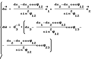 Выберем в качестве точки точку пересечения двух прямых, одна из которых проходит через в направлении , а другая проходит через в направлении Тогда получаем уравнения![]() Обозначим ij – угол между и , то есть Тогда из предыдущего уравнения получаем![]() Таким образом, выше получено (с точностью до обозначений), что ![]() где l1, l2, l3 – фиксированные для данного манипулятора параметры, определяемые размещением и ориентацией колесных датчиков.
