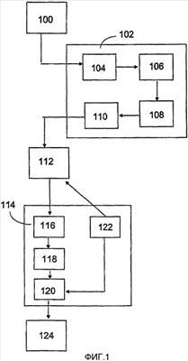 Система потоковой передачи мультимедийных данных обычно содержит один или несколько мультимедийных источников 100, таких, как видеокамера и микрофон, либо файлы видеоизображений или компьютерной графики, хранящиеся на носителе данных. Необработанные данные, полученные из различных мультимедийных источников 100, объединяются в мультимедийный файл в кодере 102, который также может называться модулем редактирования. Необработанные данные, поступающие из одного или нескольких мультимедийных источников 100, сначала захватываются с помощью средства 104 захвата, входящего в кодер 102, причем указанное средство захвата обычно реализуется в виде различных интерфейсных карт, программного драйвера или прикладного программного обеспечения, управляющего функцией карты. Например, видеоданные могут захватываться с помощью платы видеозахвата и соответствующего ей программного обеспечения. Выходные данные средства 104 захвата обычно представляют собой либо несжатый, либо незначительно сжатый поток данных, например, несжатые видеокадры формата YUV 4:2:0 или формата JPEG движущегося изображения, когда подразумевается плата видеозахвата.