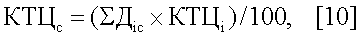 КТЦк=[(46,67×0,97)+(21,11×0,98)+(10×0,99)+(22,22×1,09)]/100=1,001