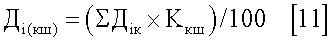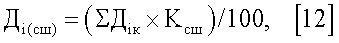 5. Определяют долю i-того угольного компонента каждого поставщика соответственно в коксовой и спекающей группе – Дiк и Дic, по формулам [7] и [8] соответственно: