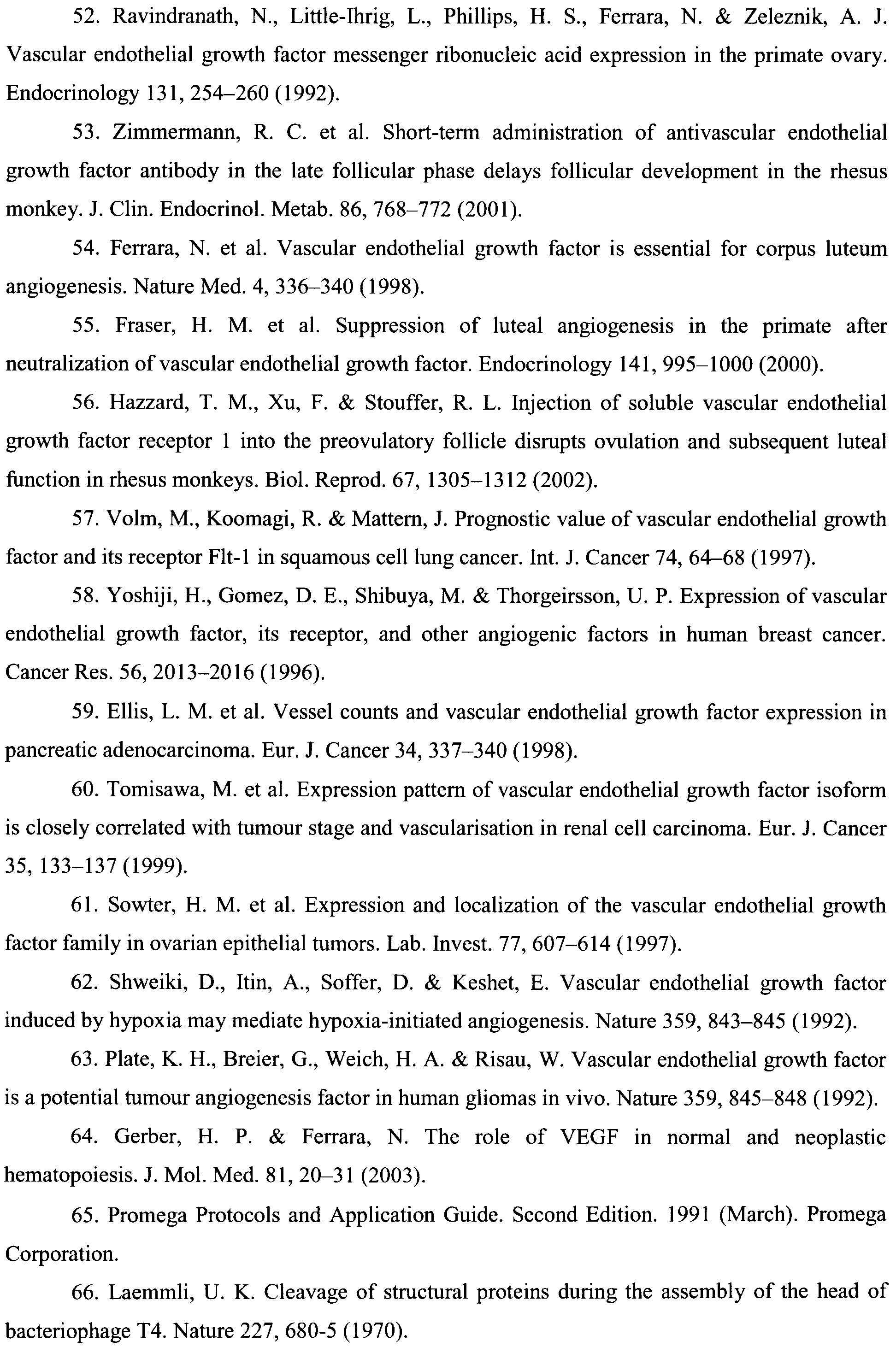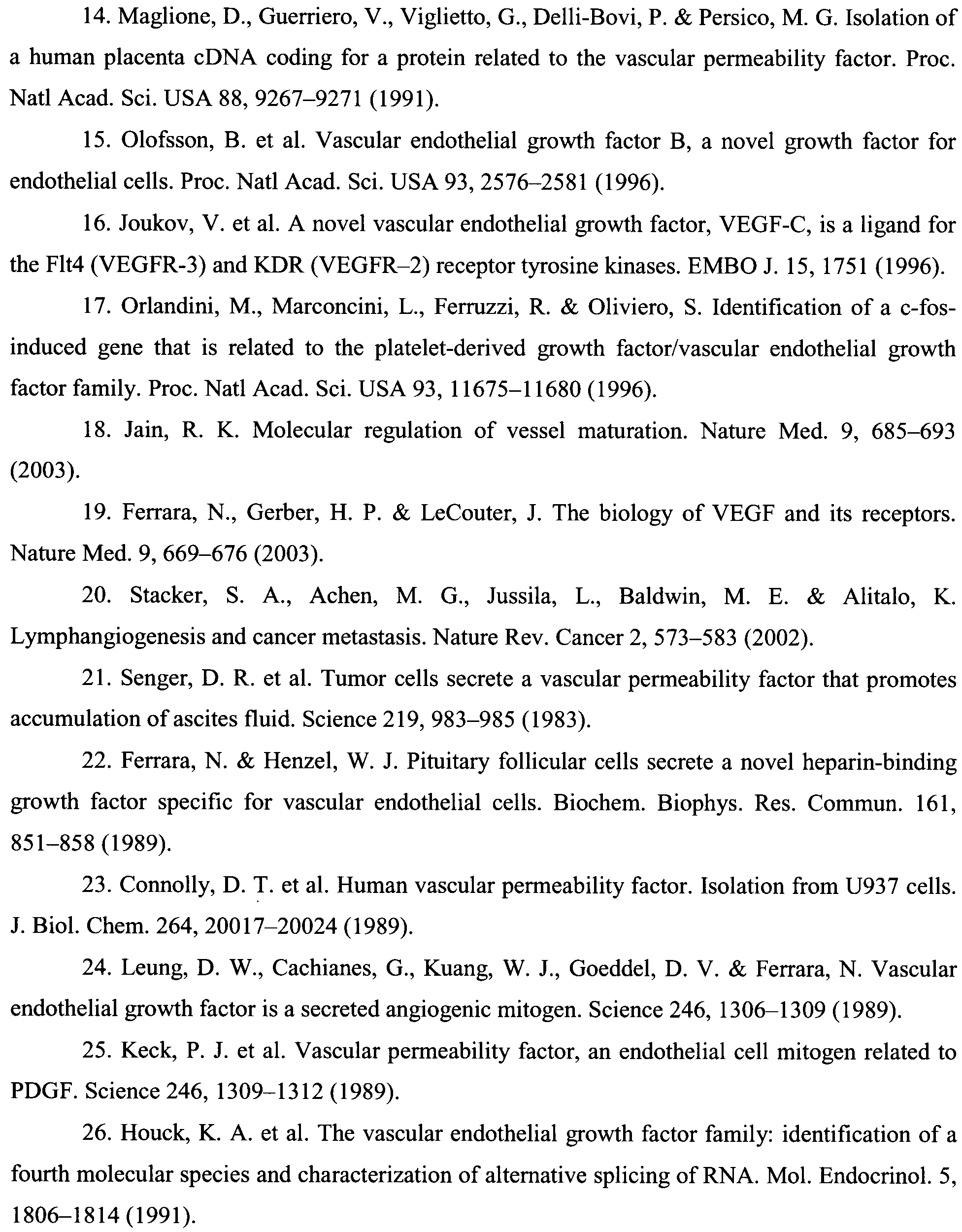RU 2295535 C2, 20.03.2007. KECK P.J. et al. Vascular permeability factor, an endothelial cell mitogen related to PDGF, Science, 1989, v.246, n.4935, p.1309-12. HOUCK K.A. et al. The vascular endothelial growth factor family: identification of a fourth molecular species and characterization of alternative splicing of RNA, Mol Endocrinol., 1991, v.5, n.12, p.1806-14.