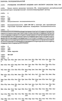 (54) ЛИНИЯ КЛЕТОК МЕЛАНОМЫ ЧЕЛОВЕКА PG, СЕКРЕТИРУЮЩИХ РЕКОМБИНАНТНЫЙ ГРАНУЛОЦИТАРНО-МАКРОФАГАЛЬНЫЙ КОЛОНИЕСТИМУЛИРУЮЩИЙ ФАКТОР