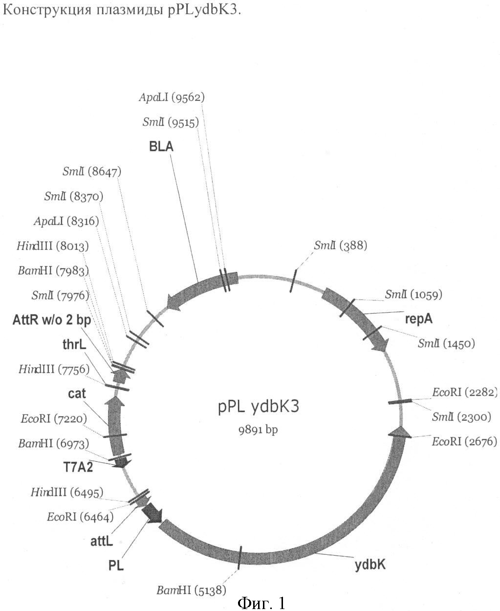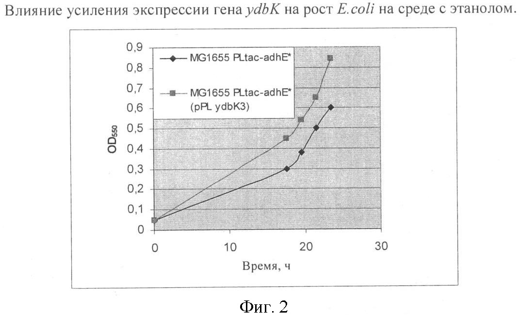 2. Бактерия по п.1, отличающаяся тем, что указанная экспрессия усилена за счет модификации последовательности, контролирующей экспрессию гена ydbK или за счет увеличения числа копий гена ydbK.