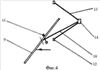 На фиг.1 схематично изображено устройство очистки от наносов русел рек и каналов; на фиг. 2 схематично изображен механизм перемещения гидравлического рыхлителя наносов по типу рыбьего хвоста, вид сверху при движении пластины влево по потоку, на фиг. 3 – то же при нейтральном положении и контакте пластины с двумя опорами; на фиг. 4 – то же при движении пластины вправо.