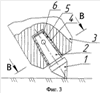 На фиг.3 – сечение узла крепления радиального резца с хвостовиком прямоугольного сечения,