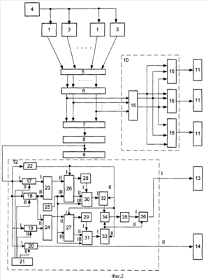 Сигналы с n-выходов преобразователя 6 аналог-код поступают на n-входы блока 10 определения неравномерности размещения груза в транспортном средстве и соответственно на n-входы блока 15 памяти.