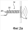 Возбуждающий элемент 14 может быть, например, магнитострикционным возбуждающим элементом. Такой элемент известен сам по себе, что известно специалистам в данной области техники. Как показано на фиг.2а, магнитострикционный возбуждающий элемент 14 содержит стержень 20 из материала, способного изменять свою форму и размеры под воздействием магнитного поля. Вокруг стержня 20 намотана катушка 22. Когда поступает электрический аудиосигнал и проходит по катушке 22, последняя генерирует магнитное поле, посредством чего соответственно изменяется стержень 20 (т.е. он расширяется или сжимается).