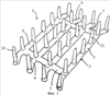 Следует заметить, что мягкая подставка, т.е. подставочное устройство и гибкое подставочное устройство по данному изобретению, могут также использоваться как полка или как поддерживающая подставка, любая из которых обеспечивает функцию поддержания блюдец и ножевых изделий, и может быть по желанию помещена внутри корзины обычной посудомоечной машины в требуемом месте. В последующем при упоминании термина «подставочное устройство» обычно, если не указано иное, имеется в виду гибкое подставочное устройство, равно как и подставочное устройство.